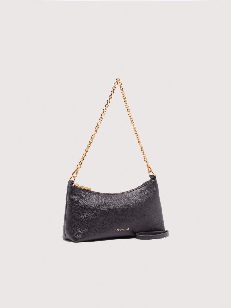 Diese moderne und vielseitige Minitasche der Linie Coccinelle Aura ist durch den bequemen Schulterriemen aus Leder ein idealer Alltagsbegleiter. Der Henkel in Kette macht sie jedoch auch perfekt für einen Abendlook. Dieses Modell besteht aus Leder, das mit speziellen Maschinen bearbeitetet und anschließend gewalkt wird, damit es sich besonders weich anfühlt. Es ist ein ausgesprochen strapazierfähiges und pflegeleichtes Leder, also ideal für den täglichen Gebrauch.