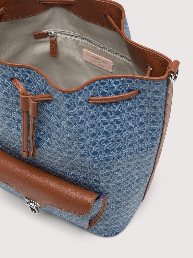 - Denimblauer, beschichteter Canvas mit Monogram-Muster