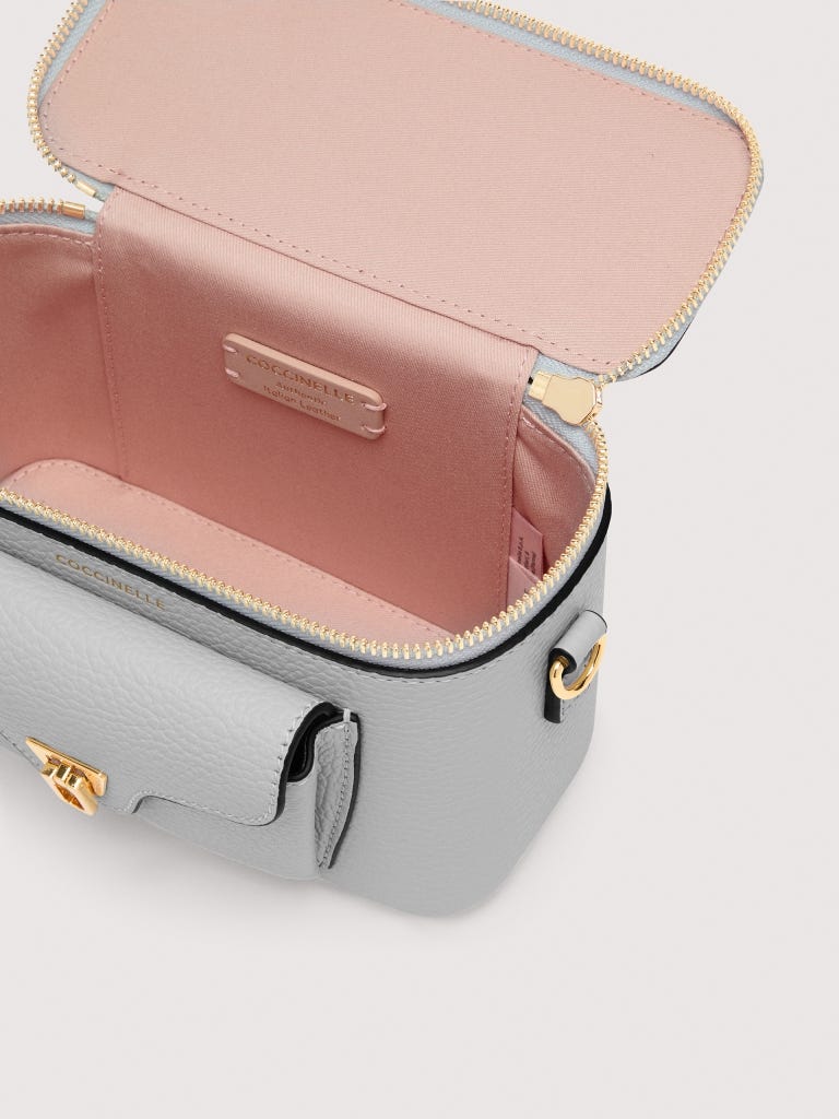 Coccinelle Beat gehört zu den Ikonen der Marke: Die unverwechselbare Plektrum-Klappschließe ist das Symbol für die Coccinelle-Markenidentität. Der Mini-Kosmetikkoffer mit Schulterriemen aus Leder ist ein perfekter Mix aus Struktur und Weichheit, Zweckmäßigkeit und modernem Design. Dieses Modell besteht aus Leder, das mit speziellen Maschinen bearbeitetet und anschließend gewalkt wird, damit es sich besonders weich anfühlt. Es ist ein ausgesprochen strapazierfähiges und pflegeleichtes Leder, also ideal für den täglichen Gebrauch.