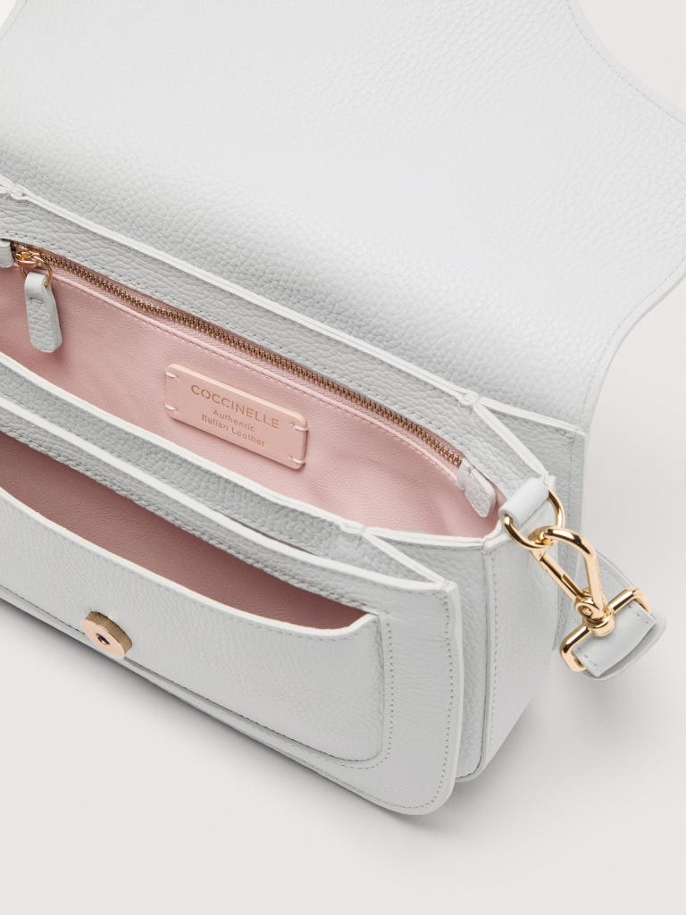 Eine neue Signatur bereichert die Marke: Coccinelle C-Me. Das neu interpretierte Logo, bei dem das C von Coccinelle das ikonische Plektrum der Marke umspielt und sanft umschließt – eine harmonische Einheit, die Vergangenheit und Gegenwart einer Frau auf stilvolle Weise zusammenführt. Die klaren, geometrischen Linien und eleganten Kurven unterstreichen das Design, während das kunstvolle Faltenbalg-Design der Tasche eine perfekte Balance aus Funktionalität und dezenter Eleganz schafft. So wird sie zum unverzichtbaren Alltagsbegleiter der Coccinelle-Frau. Dieses Modell besteht aus Leder, das mit speziellen Maschinen bearbeitetet und anschließend gewalkt wird, damit es sich besonders weich anfühlt. Es ist ein ausgesprochen strapazierfähiges und pflegeleichtes Leder, also ideal für den täglichen Gebrauch.