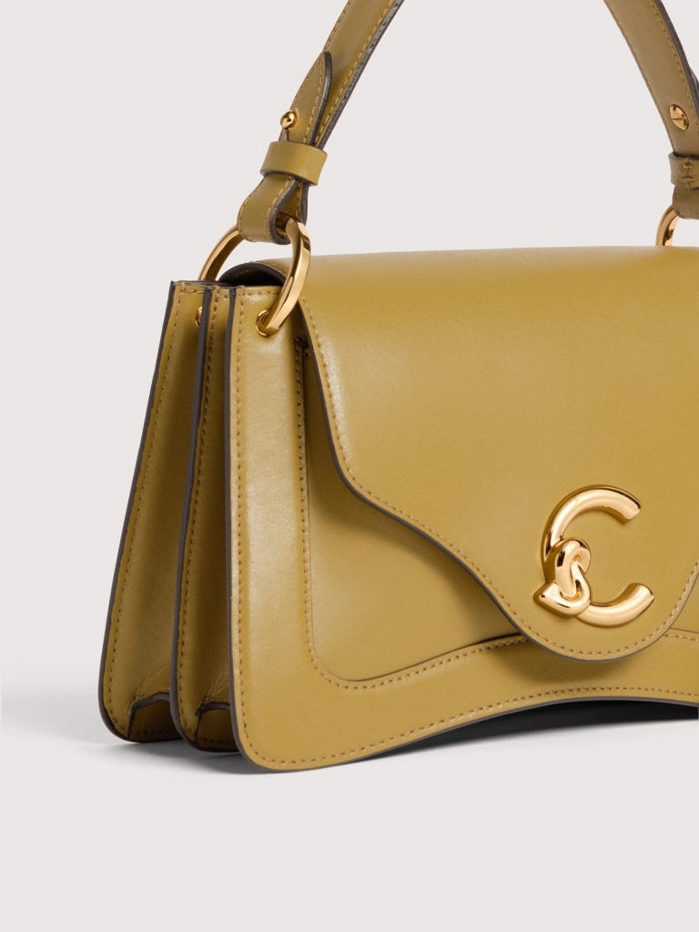 Eine neue Signatur bereichert die Marke: Coccinelle C-Me. Das neu interpretierte Logo, bei dem das C von Coccinelle das ikonische Plektrum der Marke umspielt und sanft umschließt – eine harmonische Einheit, die Vergangenheit und Gegenwart einer Frau auf stilvolle Weise zusammenführt. Die klaren, geometrischen Linien und eleganten Kurven unterstreichen das Design, während das kunstvolle Faltenbalg-Design der Tasche eine perfekte Balance aus Funktionalität und dezenter Eleganz schafft. So wird sie zum unverzichtbaren Alltagsbegleiter der Coccinelle-Frau. Dieses Modell besteht aus Glattleder, das mit speziellen Fetten und Ölen gegerbt wird, um ihm ein langlebiges, elegantes Finish zu verleihen.