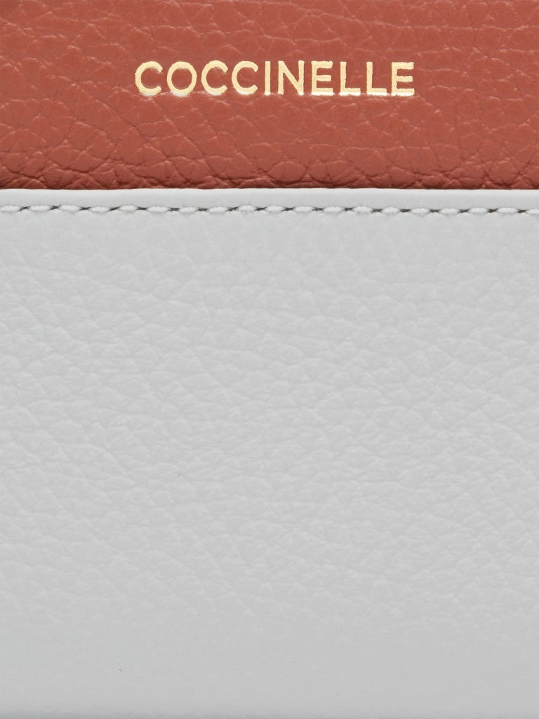 Diese Geldbörse mit seitlichem Reißverschluss für Münzen der Linie Coccinelle Loreen verdankt ihren edlen Look dem dreifarbigen Design und dem Coccinelle-Logo. Durch die optimale Aufteilung lässt sich alles Notwendige sorgfältig und ordentlich unterbringen. Dieses Modell besteht aus Leder, das mit speziellen Maschinen bearbeitetet und anschließend gewalkt wird, damit es sich besonders weich anfühlt. Es ist ein ausgesprochen strapazierfähiges und pflegeleichtes Leder, also ideal für den täglichen Gebrauch.