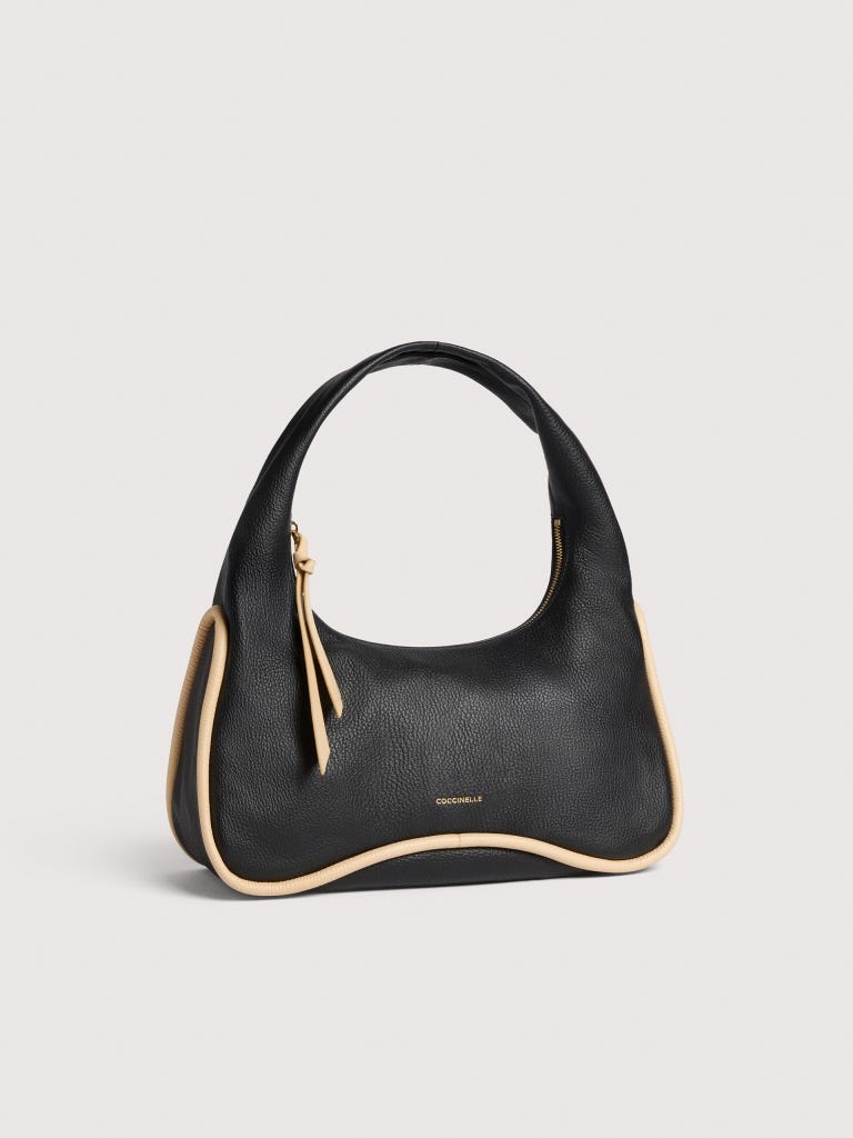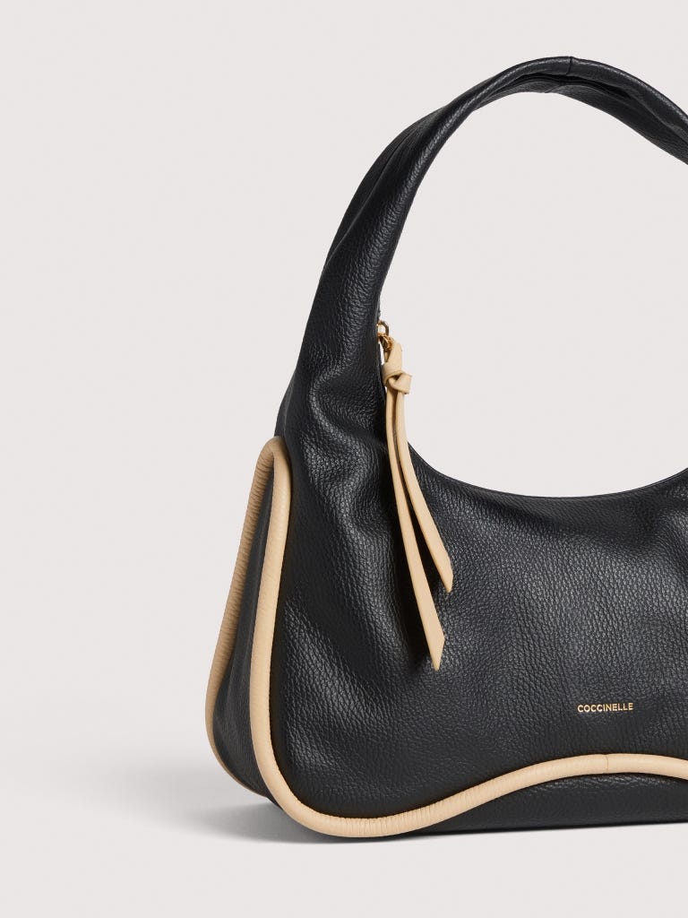 Eine breite Paspelierung fasst die Konturen der Linie Coccinelle Sven auf zeitgemäße Weise ein. Mit neuen Proportionen und trendigen Silhouetten werden die Hobo Bags zum Synonym für moderne Weiblichkeit. Die besondere Konstruktion ohne sichtbare Nähte unterstreicht die Weichheit des genarbten Leders. Dieses Modell besteht aus Leder, das mit speziellen Maschinen bearbeitetet und anschließend gewalkt wird, damit es sich besonders weich anfühlt. Es ist ein ausgesprochen strapazierfähiges und pflegeleichtes Leder, also ideal für den täglichen Gebrauch.